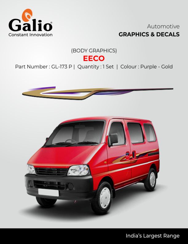 Enhance the appearance of your Maruti Suzuki Eeco (2010 to 2017) with this stylish **Body Graphics Set**. Designed to match the body contours perfectly, these high-quality decals add a bold and sporty character to your vehicle.