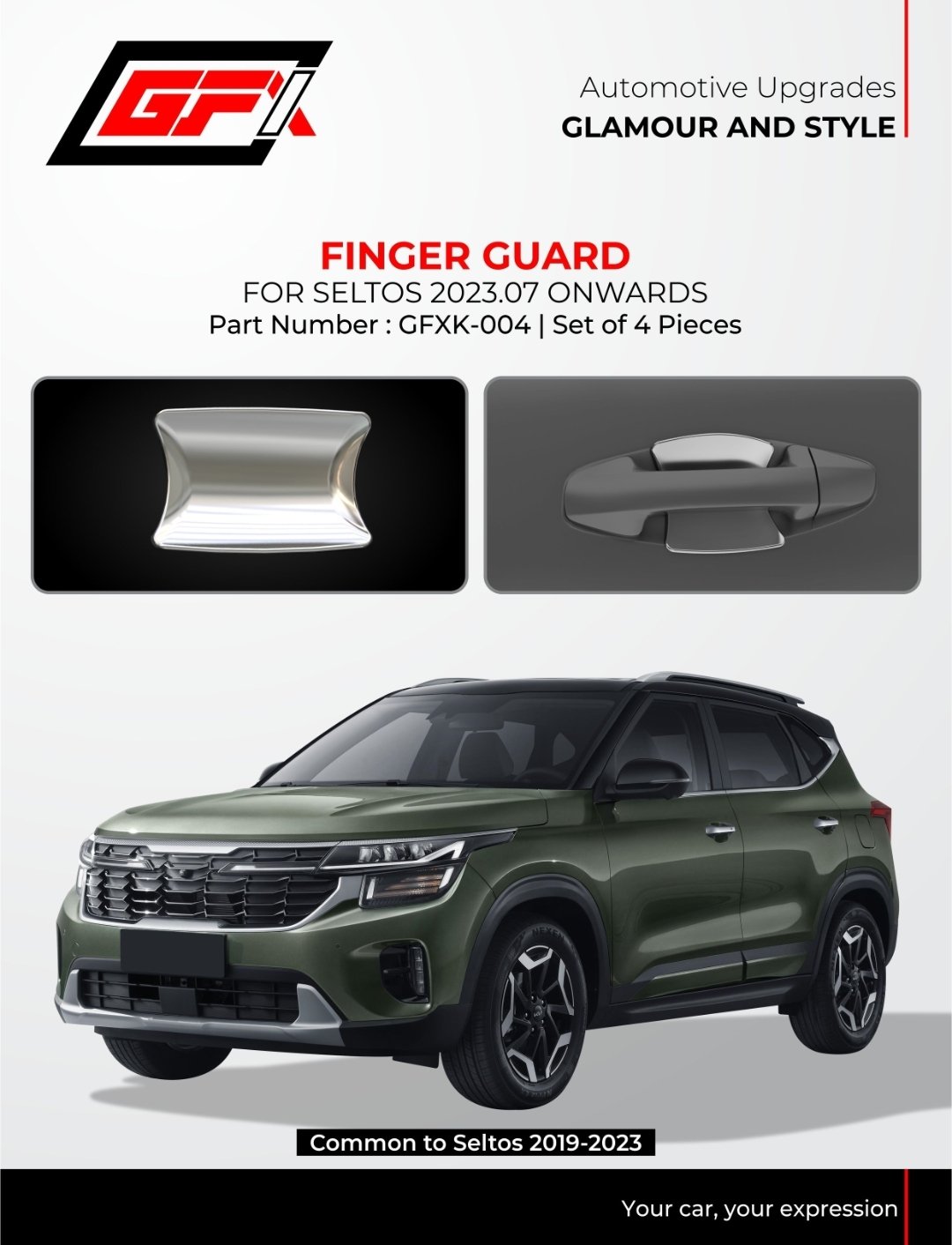 Chrome Finger Guard Garnish (4 Pcs) for KIA Seltos 2023 Facelift and 2019-2023. Protects door handle cups from scratches. Easy DIY install. GFXK-004.