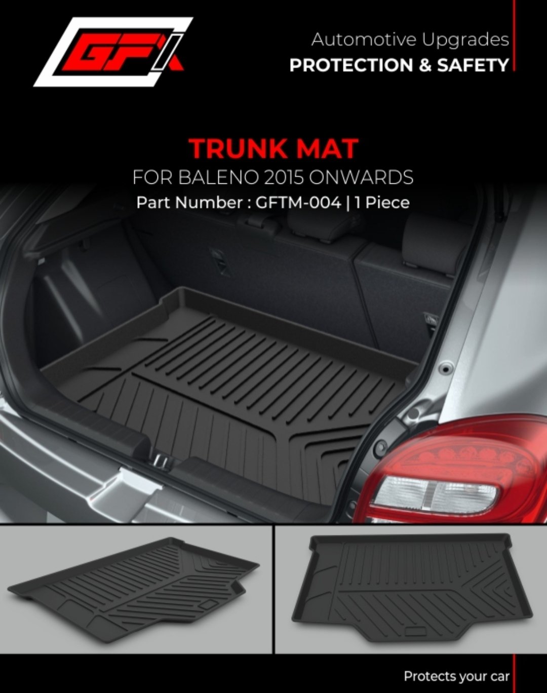 Protect your car’s boot space with the premium GFX custom-fit waterproof trunk mat for Maruti Baleno (2015+) and Toyota Glanza (2019+). Features a raised 3D edge to trap spills, dirt, and mud, ensuring effortless cleaning and ultimate carpet protection.