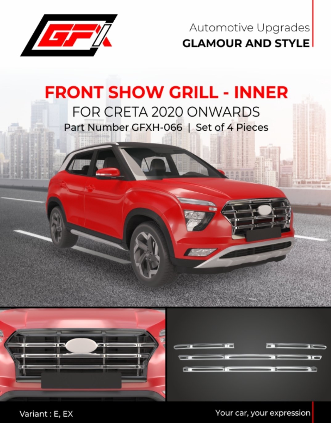 GFX Front Show Grill Inner Chrome Bars for Hyundai Creta 2020 Onwards – Set of 4 (GFXH‑066) ✨