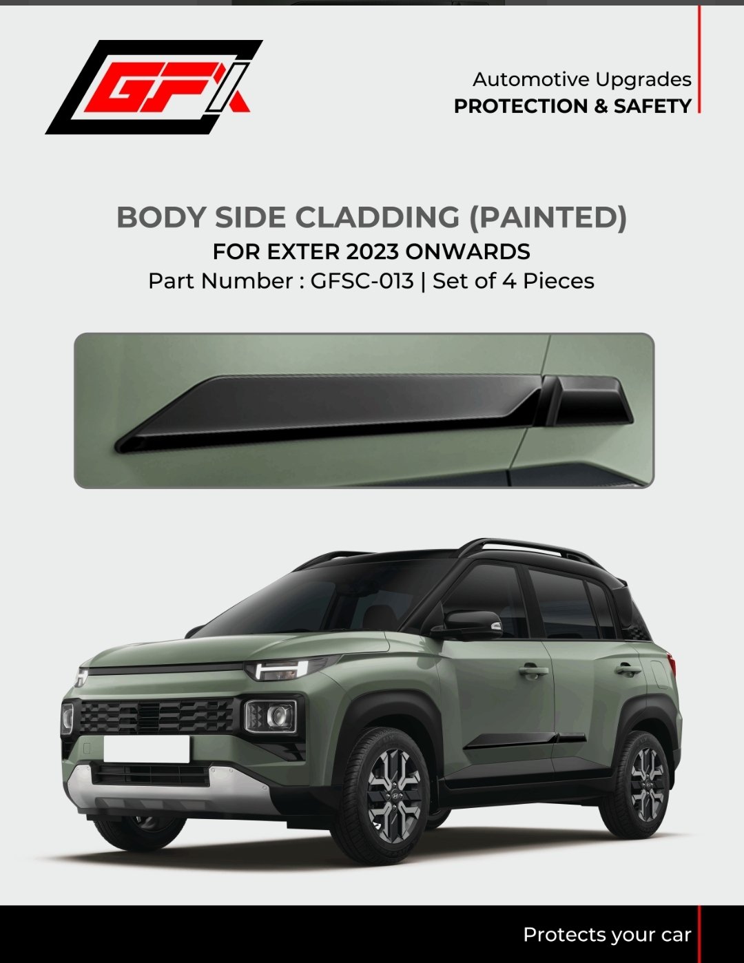 ✨ Give your Hyundai Exter 2023+ a rugged & sporty appearance with this **painted body side cladding**. Provides side protection while enhancing exterior styling.
