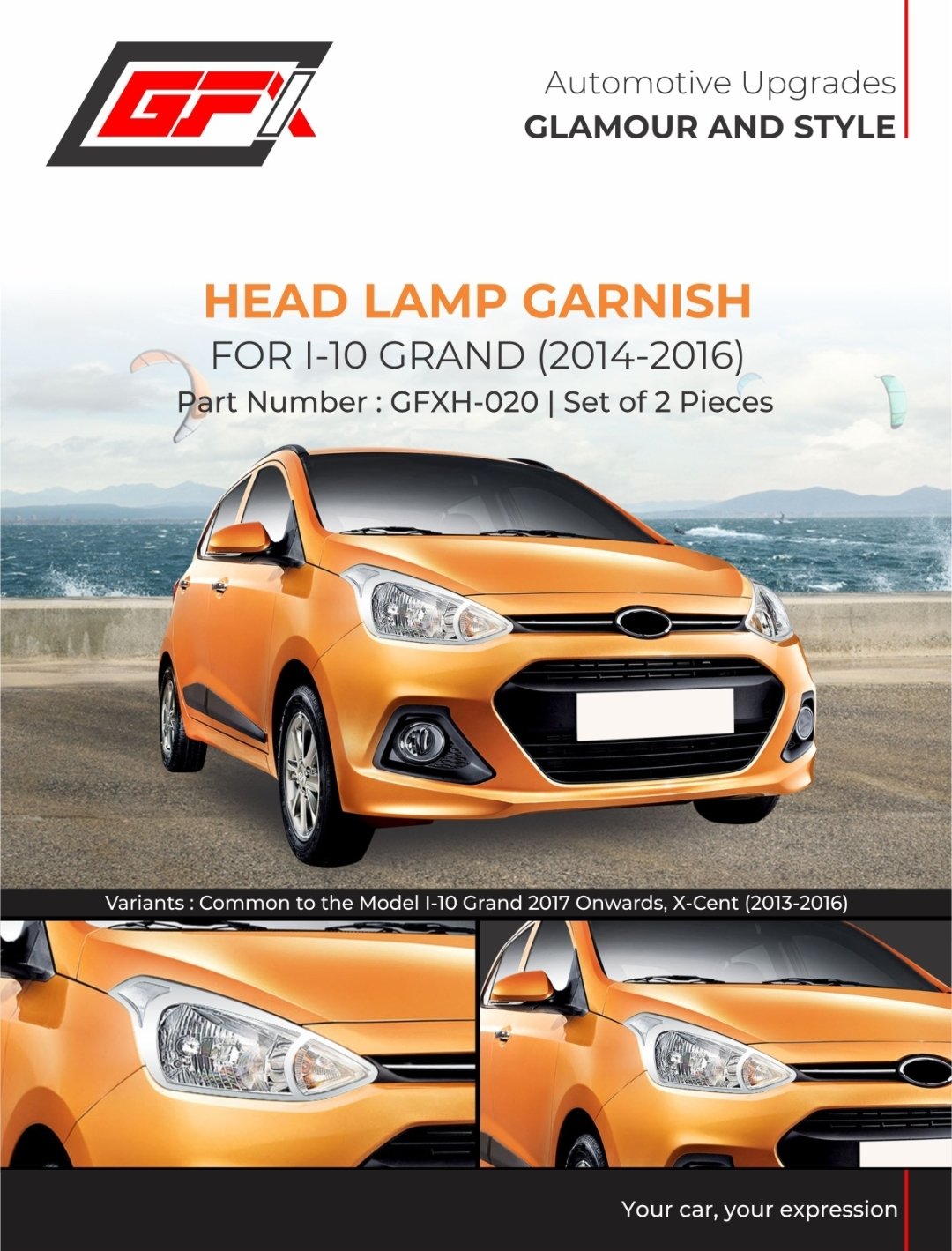 Hyundai Grand i10 (2014–2016) Head Lamp Chrome Garnish (Set of 2) | GFX GFXH-020