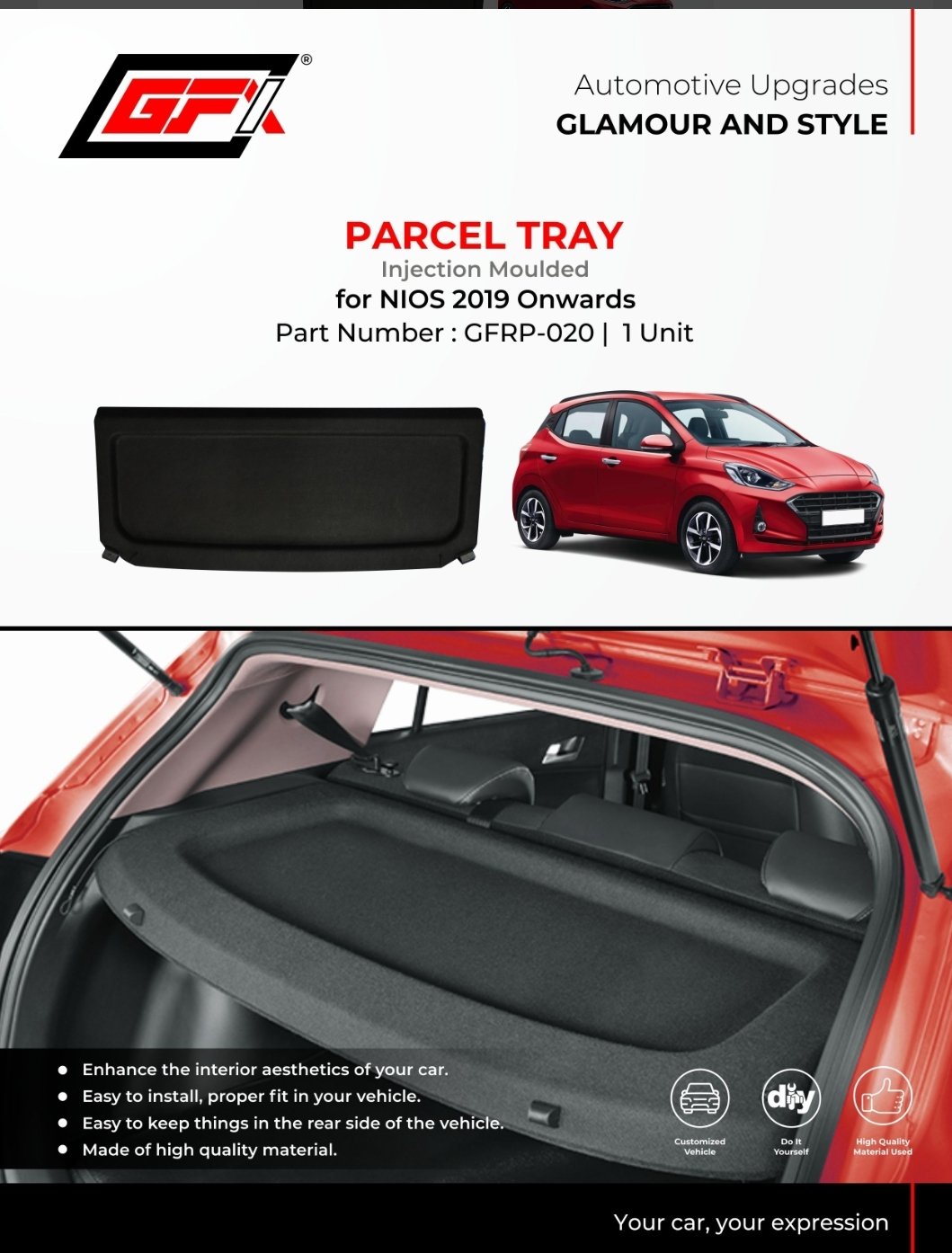 Hyundai Grand I10 Nios for Parcel Tray — improved boot storage, sturdy fit, and neat organization. Order now.