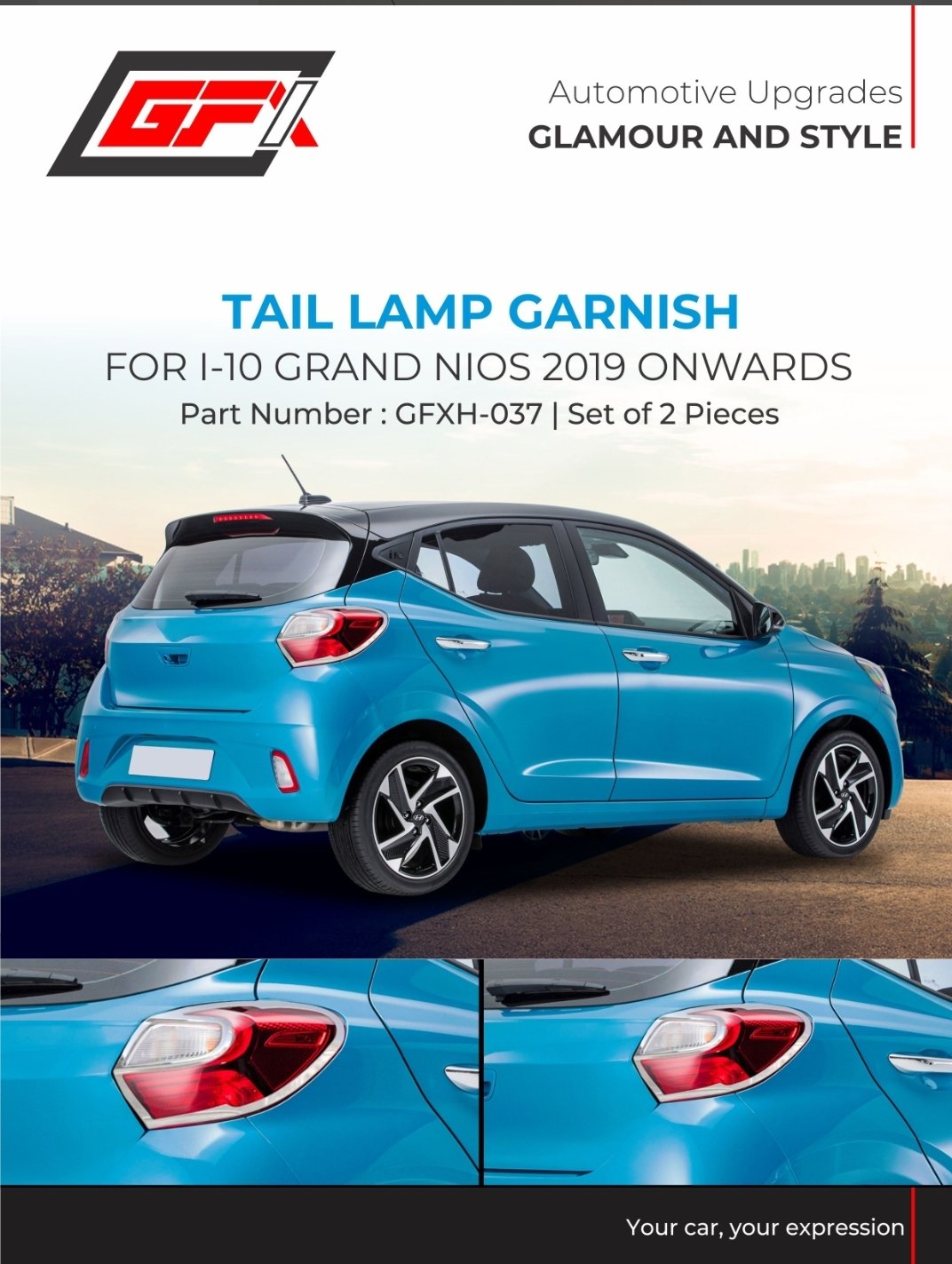 ✨ Stylish Tail Lamp Garnish Chrome for Hyundai Grand i10 Nios (2019 onwards). Protects tail lights from scratches and dust. Premium chrome finish, long-lasting & rust-proof. Easy installation with 3M adhesive.