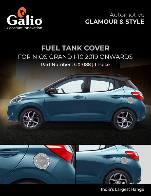 Add a premium touch to your Hyundai Grand i10 Nios with this stylish chrome fuel tank cover. Custom-designed for the 2019 onwards model, this cover enhances the side profile of your car while providing a layer of protection to the fuel lid. Made with high-quality chrome finish, it’s built to withstand weather conditions and daily wear, giving your vehicle a clean, polished look. Installation is effortless with the included adhesive tape.