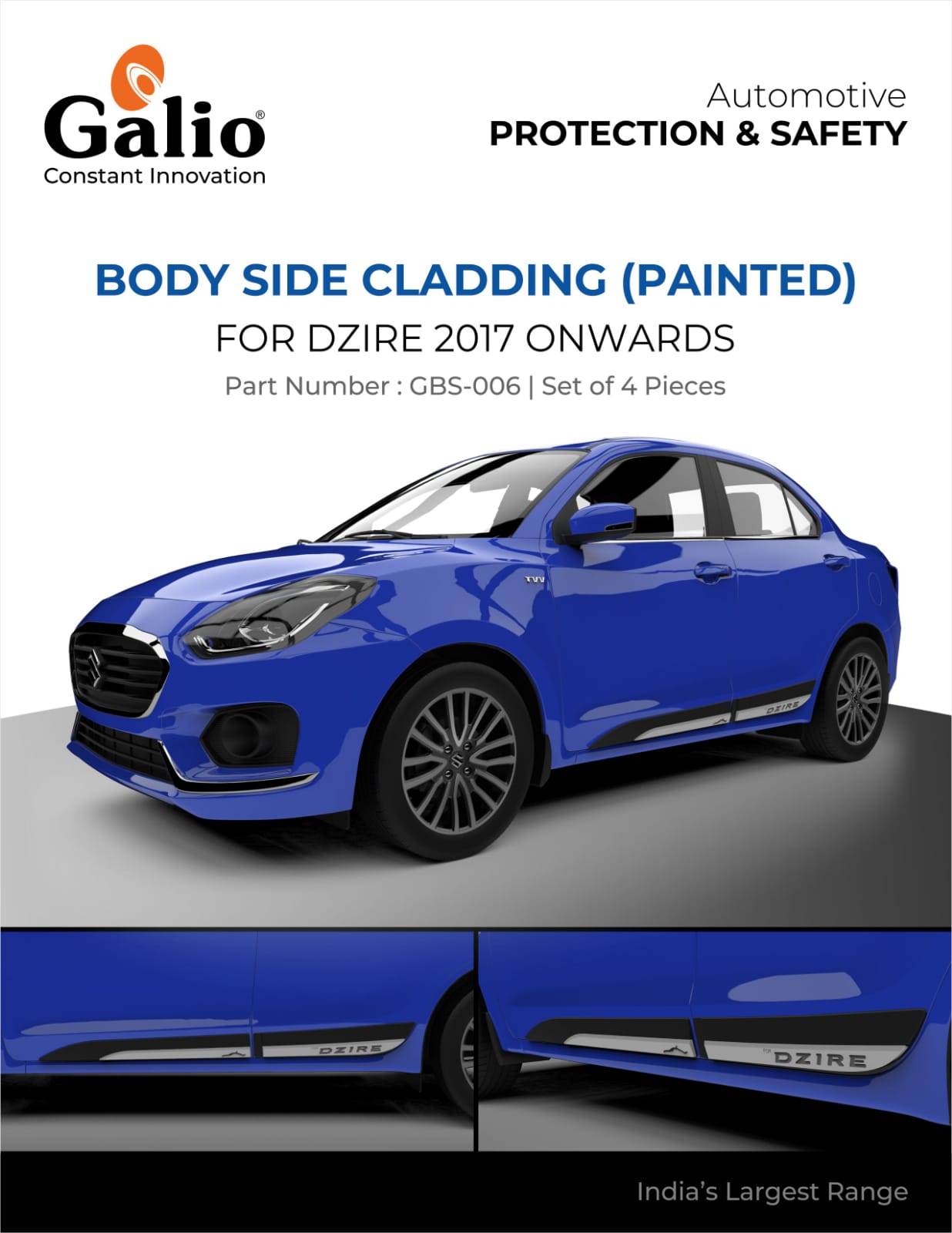 MARUTI SUZUKI DZIRE 2017+ BODY SIDE CLADDING PAINTED – SET OF 4 PCS