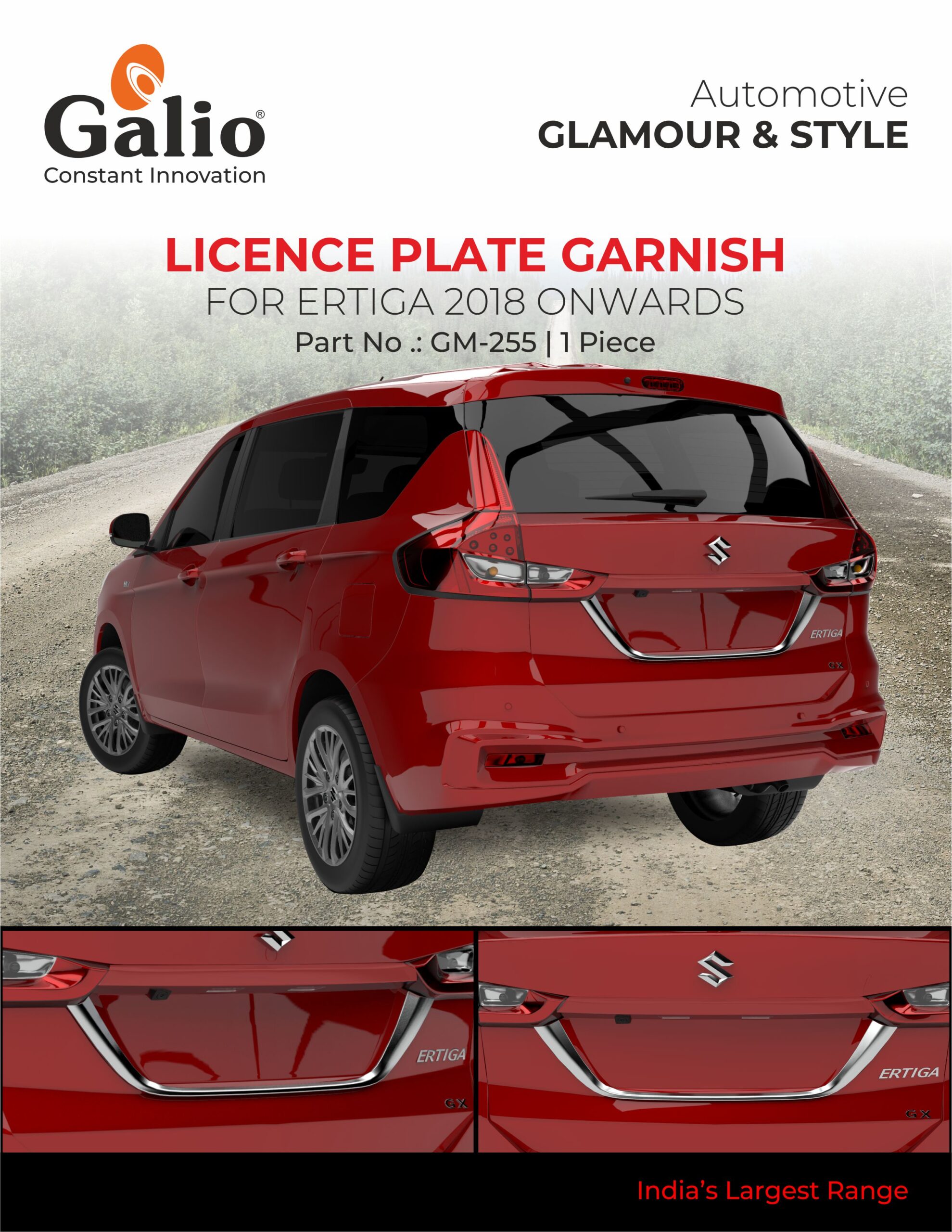 Enhance the rear profile of your Maruti Suzuki Ertiga (2018 onwards) with this premium chrome Licence Plate Garnish. Designed specifically for a sleek OEM fit, it adds a stylish accent above the number plate, elevating your vehicle’s aesthetics while offering light protection against scratches.