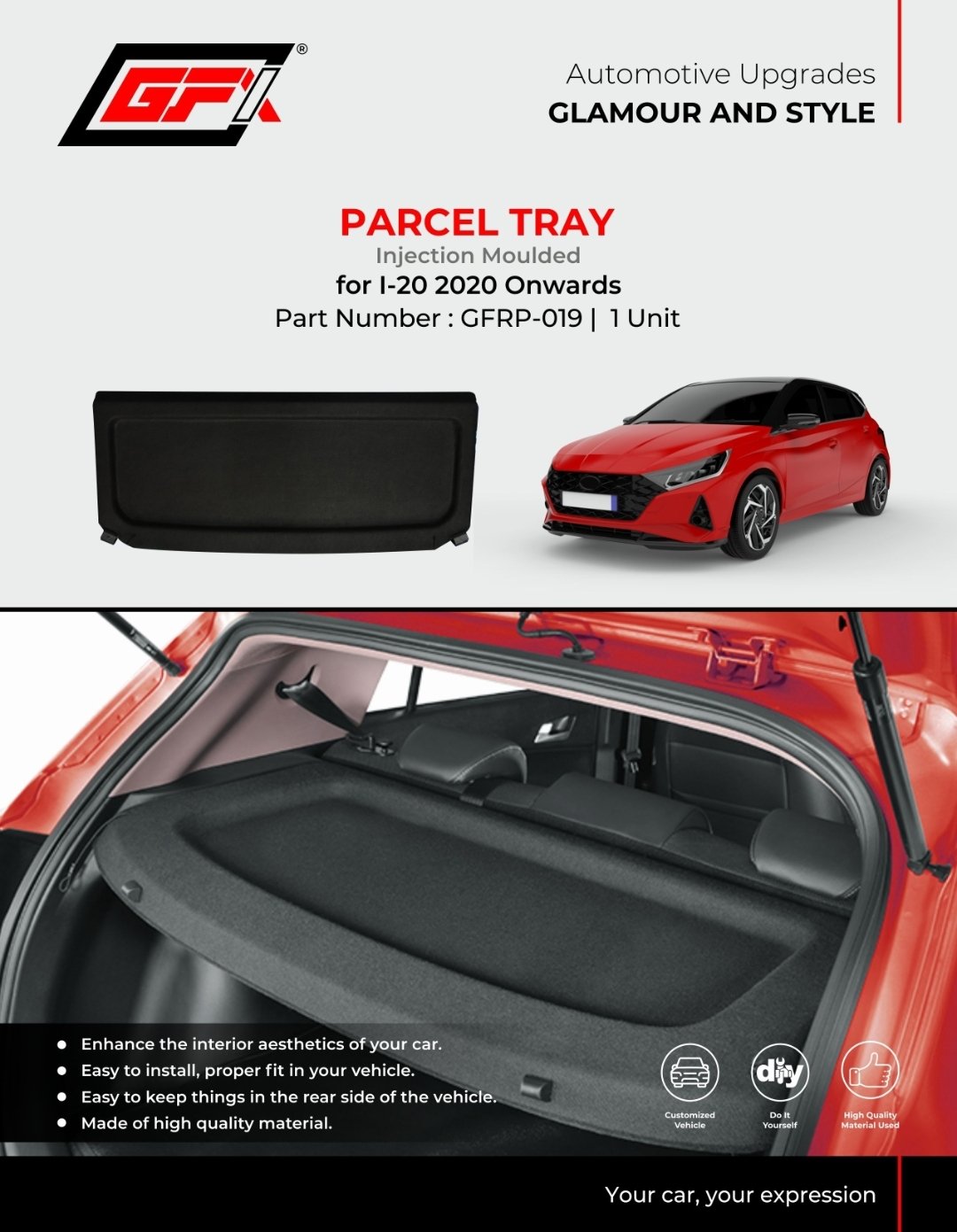 ļø Keep your Hyundai i20 (2020 onwards) organized with this Premium Injection Moulded Parcel Tray . Designed for durability and perfect fit, this rear tra