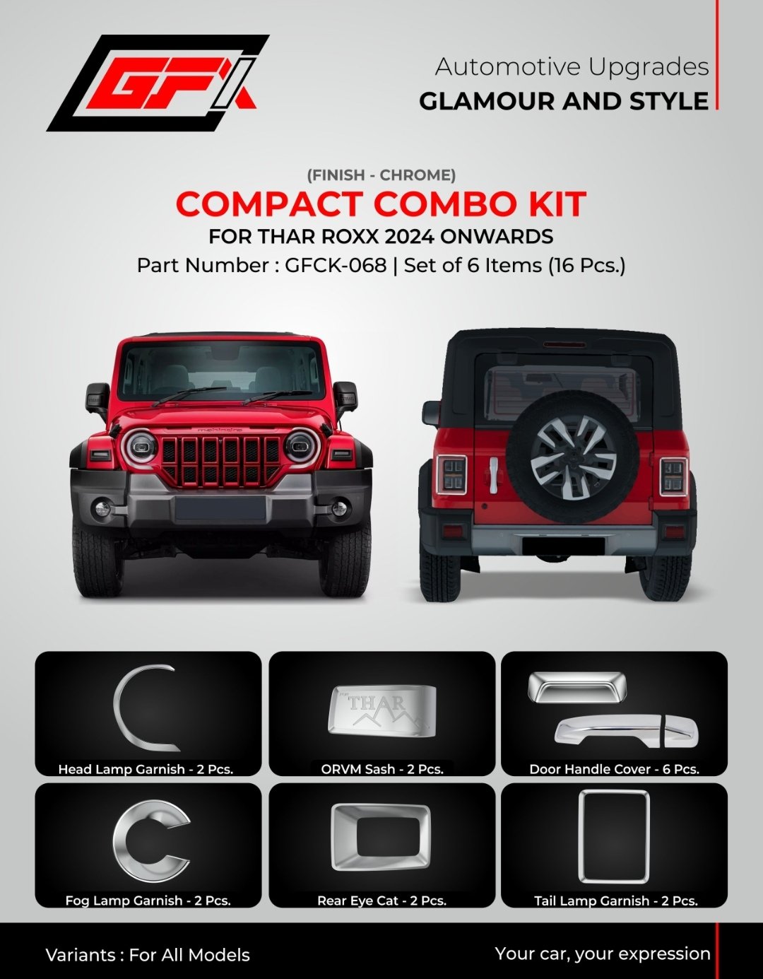 Premium 16-Piece Chrome Compact Combo Kit for Mahindra Thar ROXX (2024+) – Exterior Styling | CCT-GFCK-068