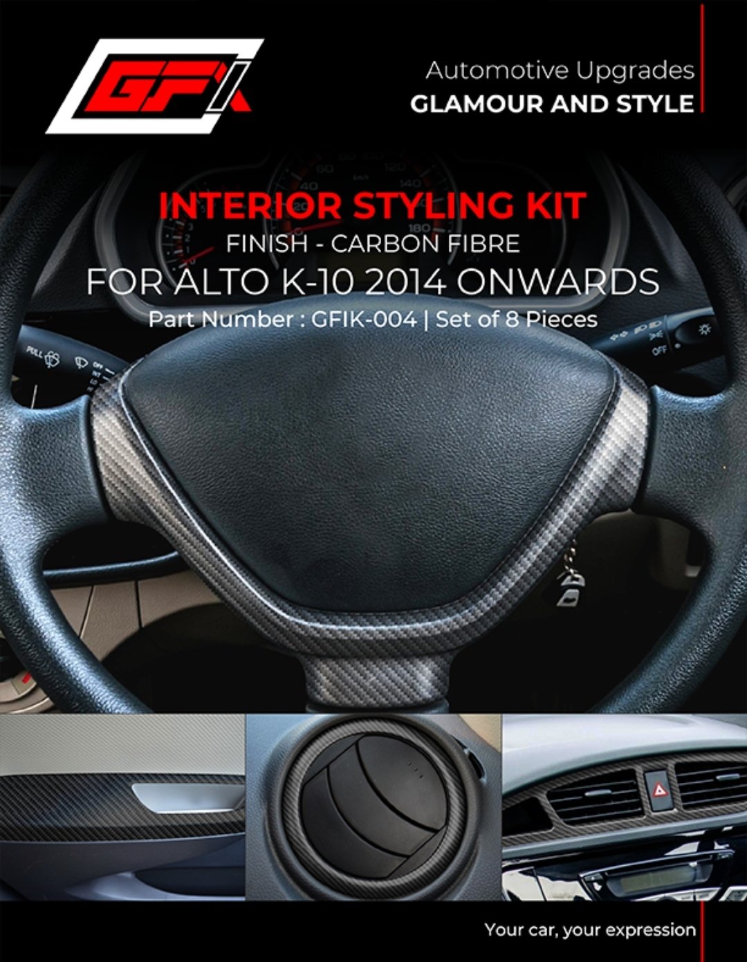 Are you looking to give your daily driver a massive aesthetic upgrade? Transform the cabin of your Maruti Suzuki Alto K-10 with the premium GFI Interior Styling Kit in a stunning Carbon Fibre finish. Designed specifically for the Alto K-10 (2014 models and onwards), this high-quality styling package adds an instant touch of glamour, sportiness, and personalized style to your vehicle’s interior.