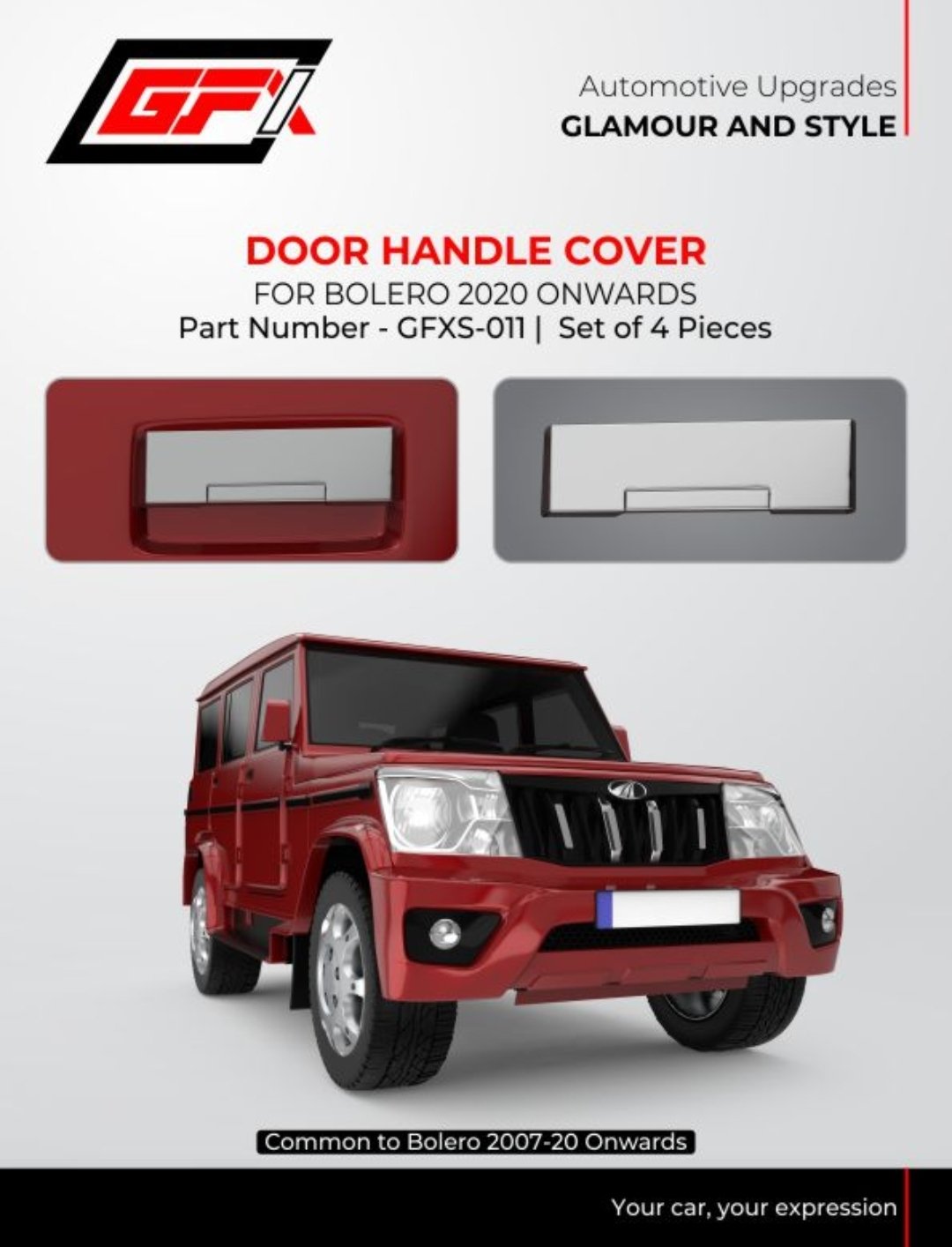 Elevate the side profile of your SUV with the Premium Chrome Door Handle Cover specifically designed for the Mahindra Bolero. This high-quality chrome garnish accessory from GFX Automotive is the ultimate solution for owners looking to add a touch of “Glamour and Style” to their vehicle. Whether you own the classic model or the latest version, these covers are engineered for a perfect fit, as they are compatible with Bolero models from 2007-2019 and 2020 onwards.