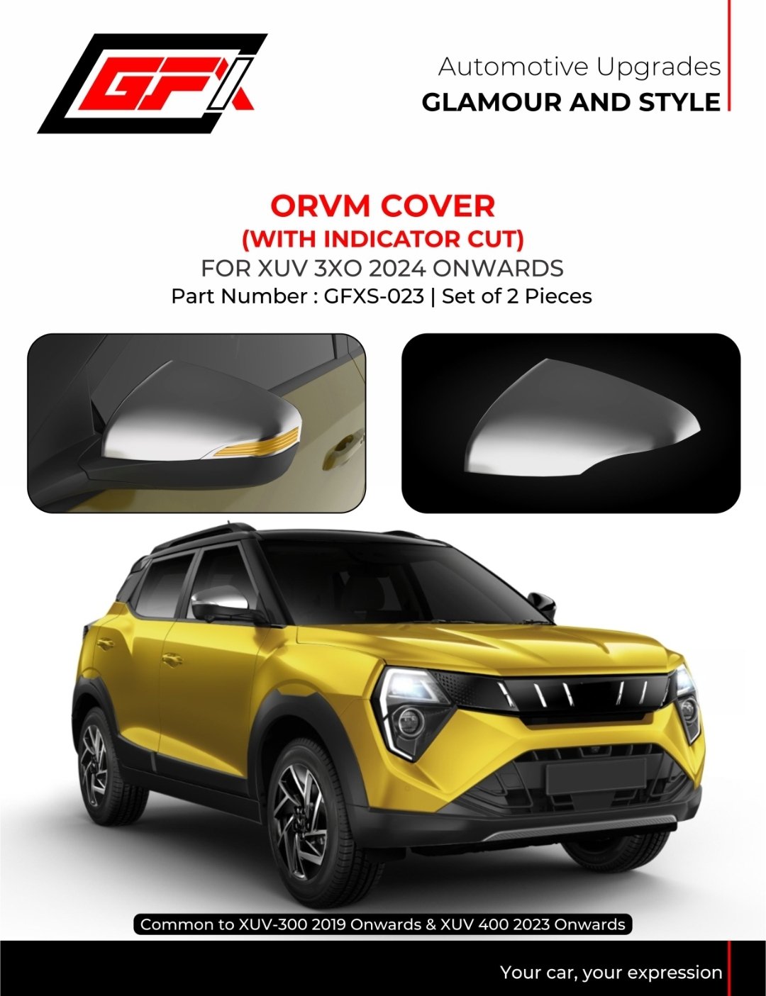 Key Features & Benefits ⨠Premium Chrome Finish: Delivers a high-gloss, luxurious shine that effortlessly elevates your car’s overall exterior styling. šŖ Precision Indicator Cutout: Carefully engineered to keep your factory turn indicators perfectly visible for optimal road safety. š”ļø Enhanced Daily Protection: Acts as a durable barrier against daily wear, parking scratches, and minor impacts. š§ļø Weather & Rust Resistant: Manufactured with high-grade, fade-proof materials designed to withstand all seasons. š Exact Seamless Fit: Custom-made specifically for Mahindra XUV 3XO, XUV 300, and XUV 400 for a factory-fitted look. š ļø Easy DIY Installation: Pre-applied heavy-duty tape allows for a quick, secure, and tool-free setup in just minutes.