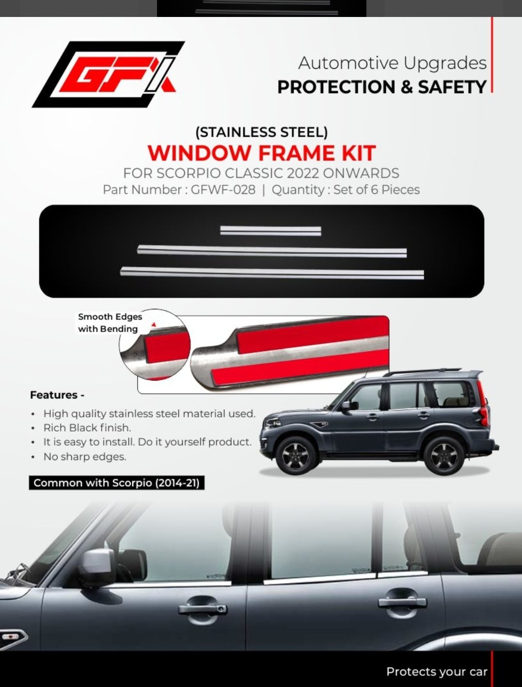 Protect your car while giving it the ultimate facelift. Invest in the GFX Stainless Steel Window Frame Kit today and drive your Scorpio with pride!