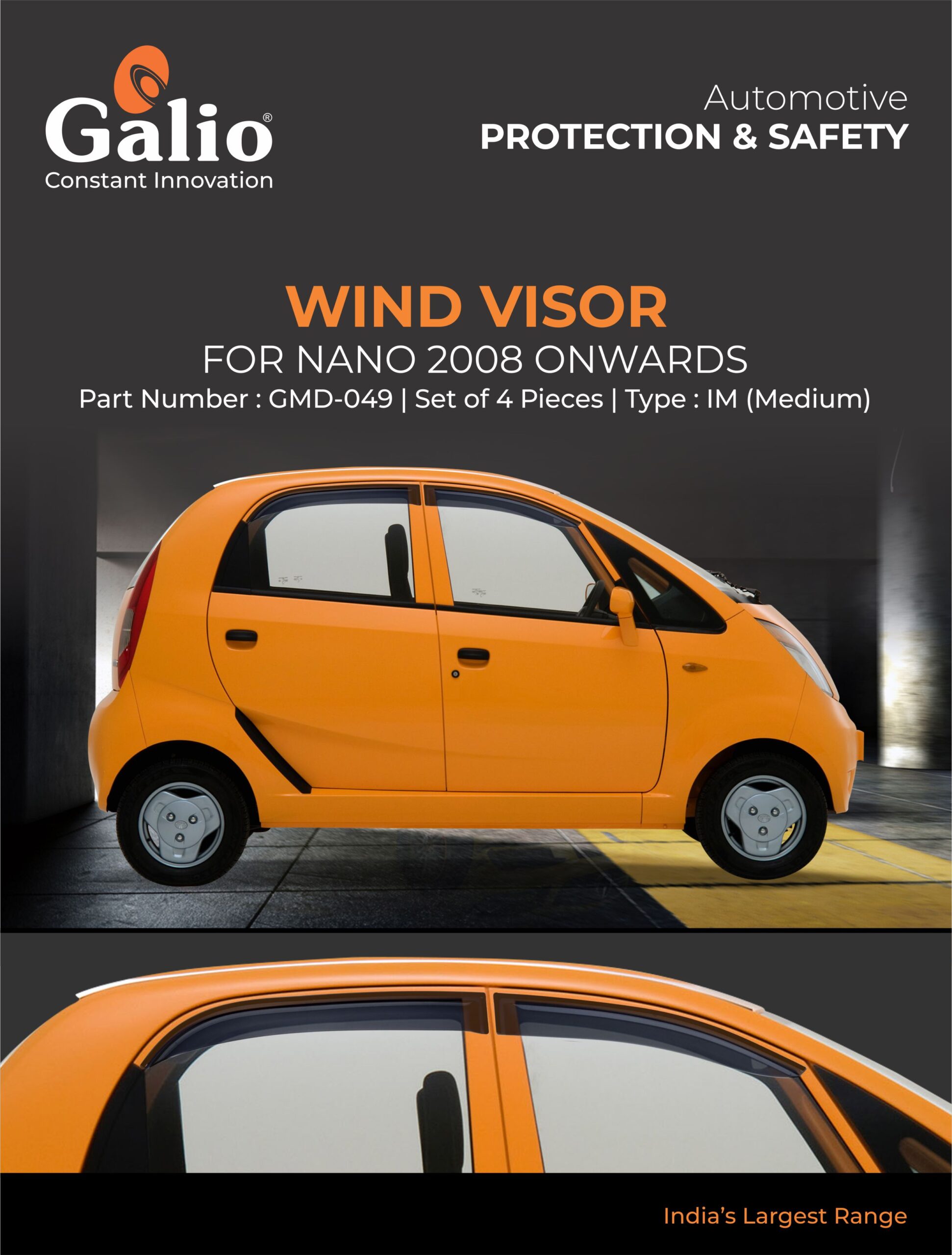 Upgrade your Tata Nano’s exterior and driving comfort with this high-quality IM (Medium) Wind Visor Set. Made with performance-grade ROHS material and certified by SGS, these visors are precisely designed to match the vehicle’s aesthetics and ergonomics. They reduce direct sunlight, enhance driving comfort, and provide a premium look. Featuring smooth edges, long-lasting translucent finish, and double-sided 3M adhesive tape for a secure fit.